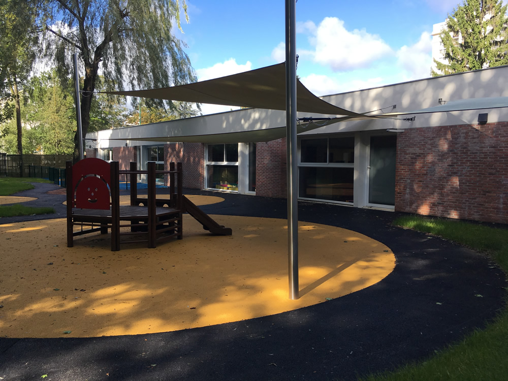 Afin de répondre aux normes, aux besoins des enfants et des familles, fin 2016 la crèche est complètement restructurée et agrandie. De plain-pied, elle offre un cadre verdoyant avec un jardin accessible par les différents services. Des jeux extérieurs variés sont à disposition des enfants. Les enfants bénéficient de structures motrices adaptées.