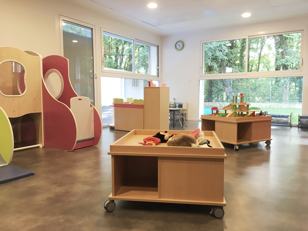 - Grandes pièces lumineuses aménagées en fonction de l’âge des enfants accueillis