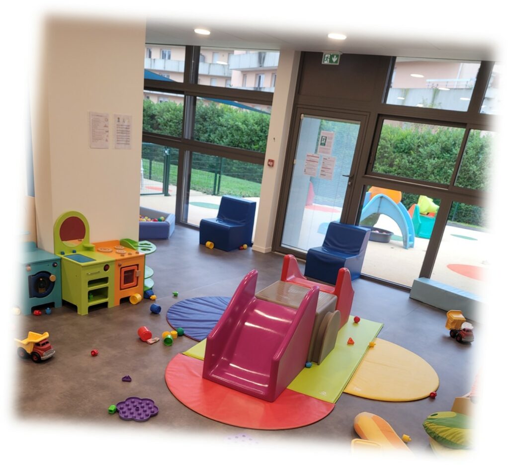 - Grandes pièces lumineuses aménagées en fonction de l’âge des enfants accueillis